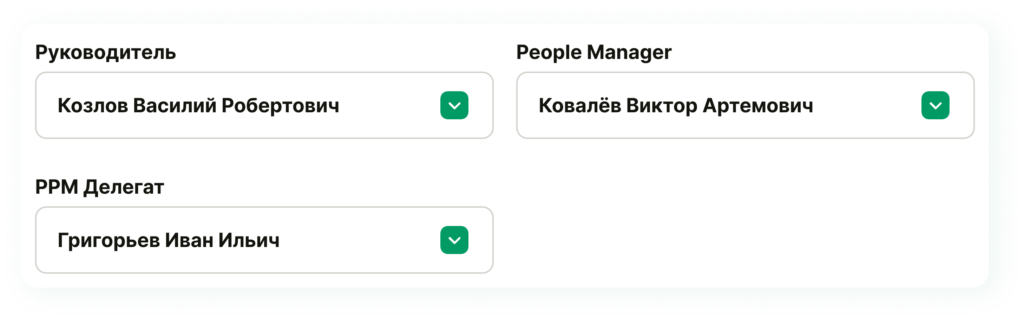 Это критически важный момент: руководитель сможет отправить благодарность только тем сотрудникам, которые указаны как его подчинённые в системе.